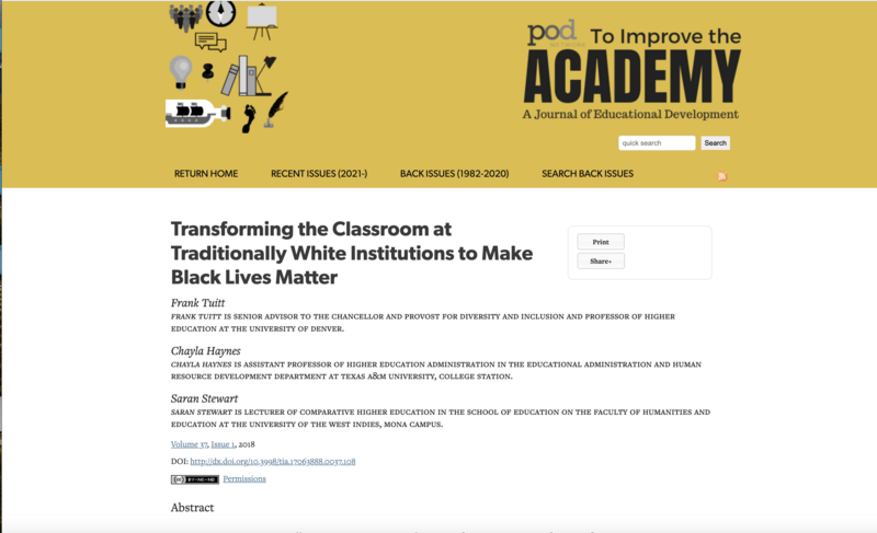 Chayla Haynes is an Associate Professor of Higher Education at Texas A&M University, where she teaches and conducts research on White faculty behaviors in collegiate classrooms, critical race pedagogy, and Black women in higher education.
