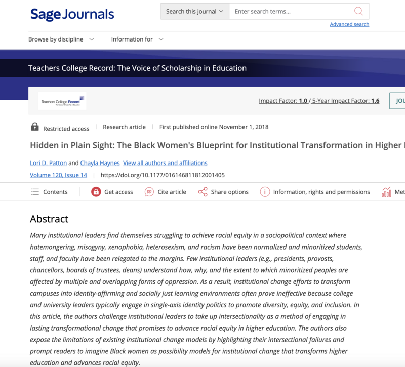 Many institutional leaders find themselves struggling to achieve racial equity in a sociopolitical context where hatemongering, misogyny, xenophobia, heterosexism, and racism have been normalized and minoritized students, staff, and faculty have been relegated to the margins. Few institutional leaders (e.g., presidents, provosts, chancellors, boards of trustees, deans) understand how, why, and the extent to which minoritized peoples are affected by multiple and overlapping forms of oppression. As a result, institutional change efforts to transform campuses into identity-affirming and socially just learning environments often prove ineffective because college and university leaders typically engage in single-axis identity politics to promote diversity, equity, and inclusion.